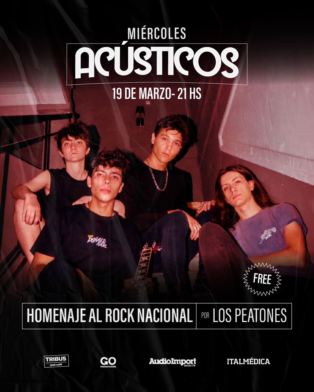 MIÉRCOLES 19 D E M ARZO A LAS 21 H S: E l c iclo M iércoles A cústico presenta a Los Peatones con su Homenaje al Rock Nacional, recreando todos los clásicos de nuestra música en versiones desenchufadas. Entrada libre y gratuita