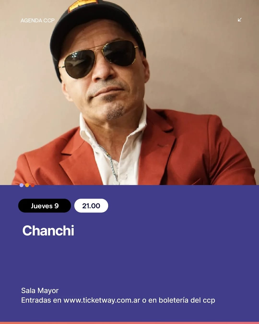 Jueves 9* 21 h-----Sala Mayor-----Chanchi-----🎟️Entradas en www.ticketway.com.ar o en boletería del ccp
