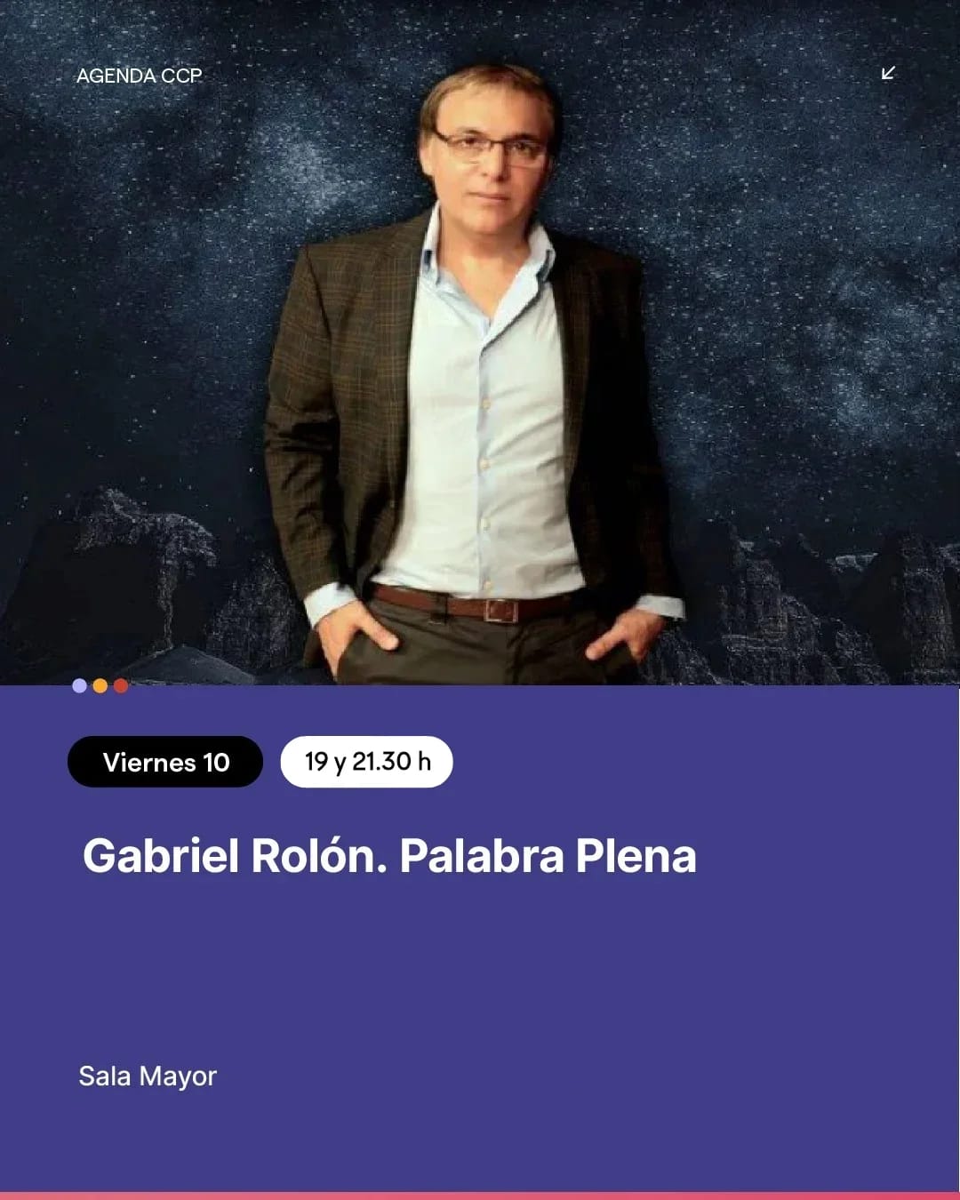 Viernes 10* 19 y 21.30 h-----Sala Mayor-----Gabriel Rolón. Palabra Plena ----‼️ LOCALIDADES AGOTADAS