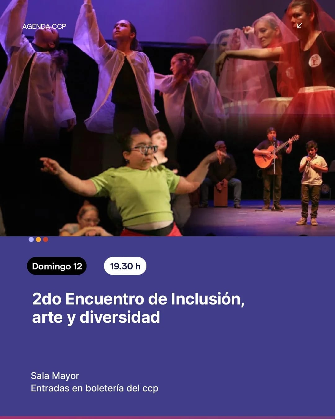 Domingo 12* 19.30 h----Sala Mayor----2do Encuentro de Inclusión, arte y diversidad-🎟️Entradas en boletería del ccp