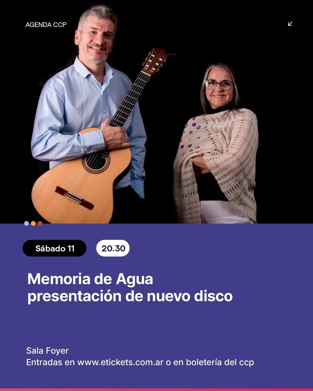 Sábado 11* 20.30 h-----Sala Foyer---Memoria de Agua – presentación de nuevo disco🎟️Entradas en www.etickets.com.ar o en boletería del ccp