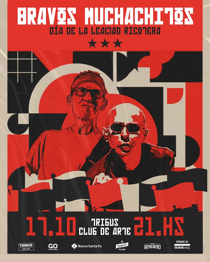 VIERNES  17 D E O CTUBRE  A  LAS  21  HS: E n e l D ía d e  la  Lealtad  Ricotera, B ravos  Muchachitos! l lega a  T ribus p ara  repasar  Oktubre  en  su  totalidad  junto  a  joyas  de  la  discografía  de  Los  Redondos  y  el Indio Solari.  Entradas a la venta en boletería y a través de Ticketway.