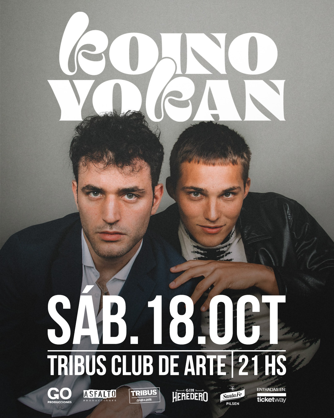 1. ÁBADO  18 D E  OCTUBRE  A L AS 2 1 H S: K oino  Yokan  regresa  a T ribus  con  un  show  íntimo, d iferente y cargado de energía. E ntradas a la venta en boletería y a través de Ticketway.