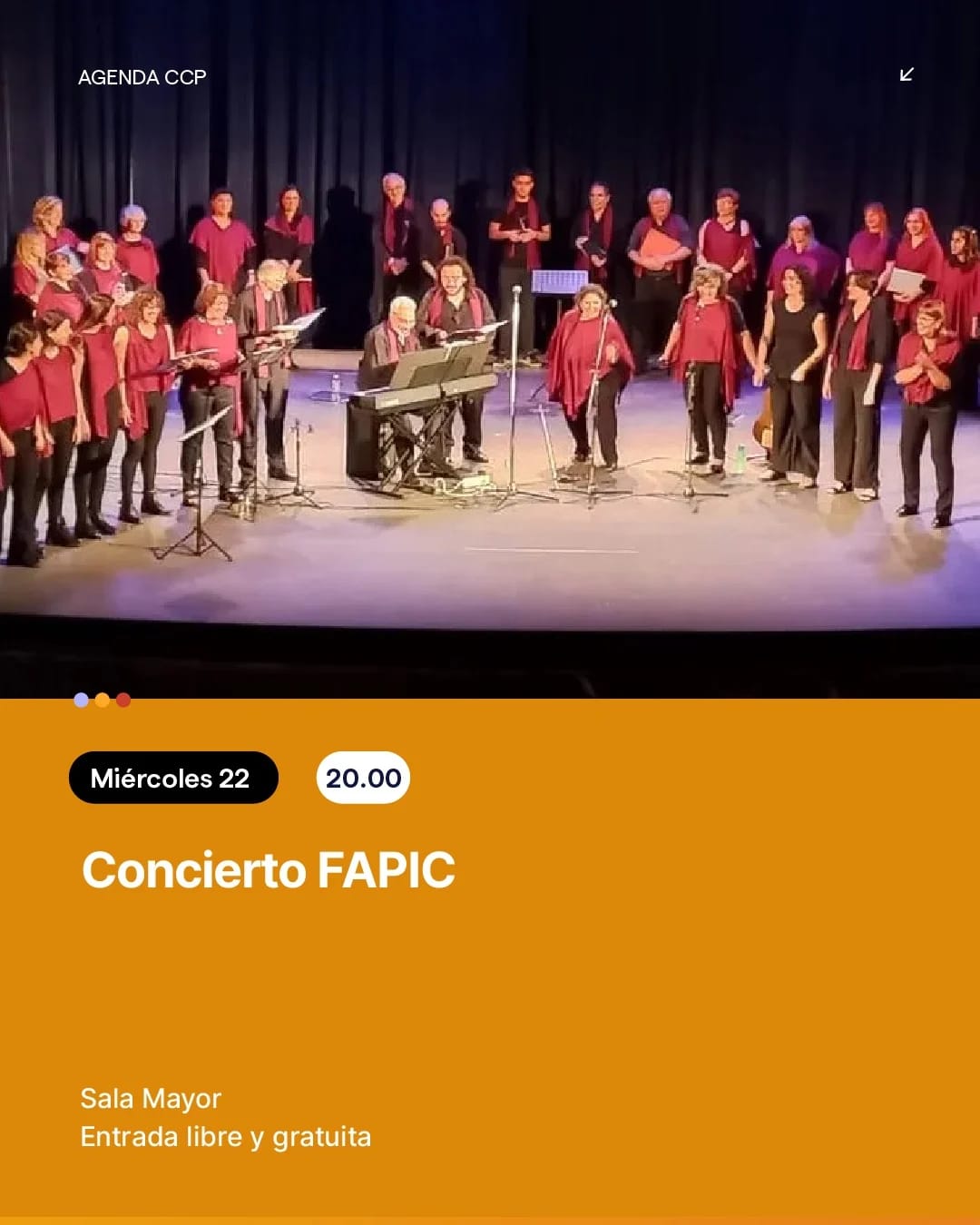 Miércoles 22 – 20 h📍 Sala Mayor----Concierto FAPIC🎟️ Entrada libre y gratuita