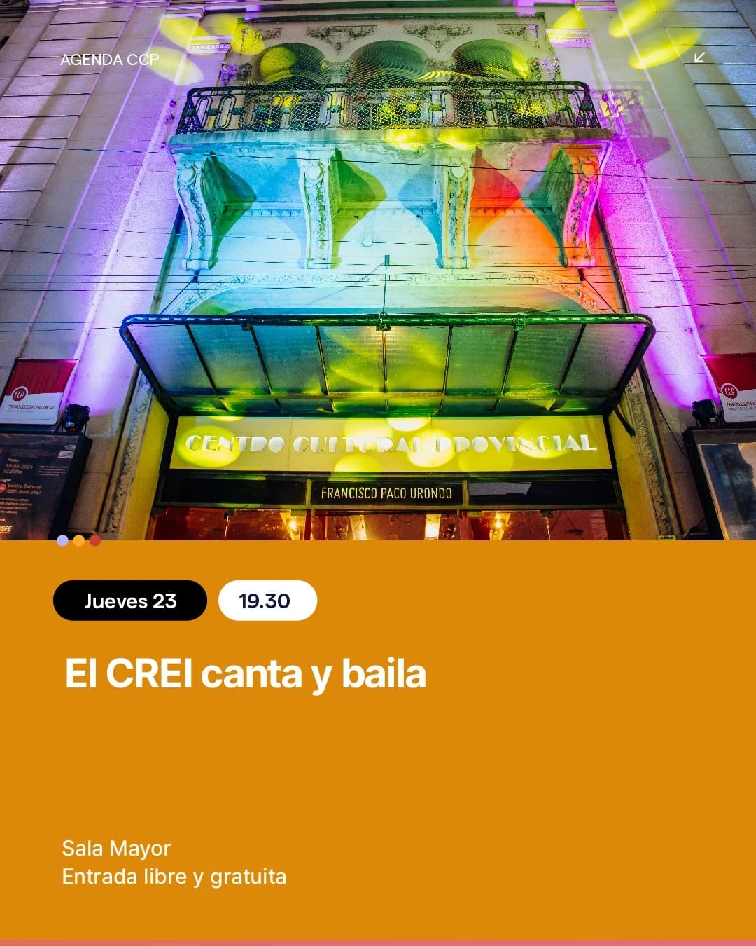 Jueves 23 – 19.30 h📍 Sala Mayor---El CREI canta y baila🎟️ Entrada libre y gratuita
