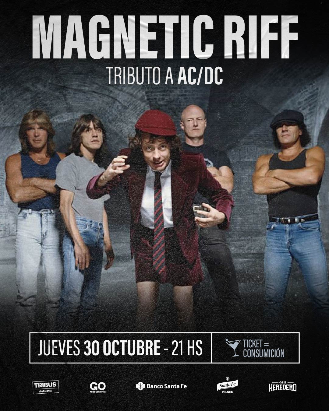 JUEVES 30 DE O CTUBRE A LAS 21 HS : Regresa a T ribus M agnetic R iff, con t odos l os c lásicos d e AC/DC para vivir una noche a p uro hard rock. Adquirí t u t icket válido por una consumición en la boletería de Tribus.
