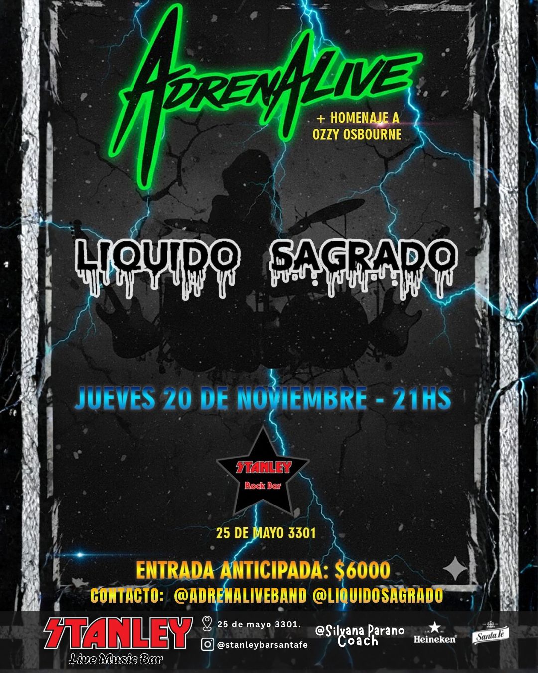 🎟 Anticipadas: $6000📩 Contacto: @adrenaliveband @liquidosagrado