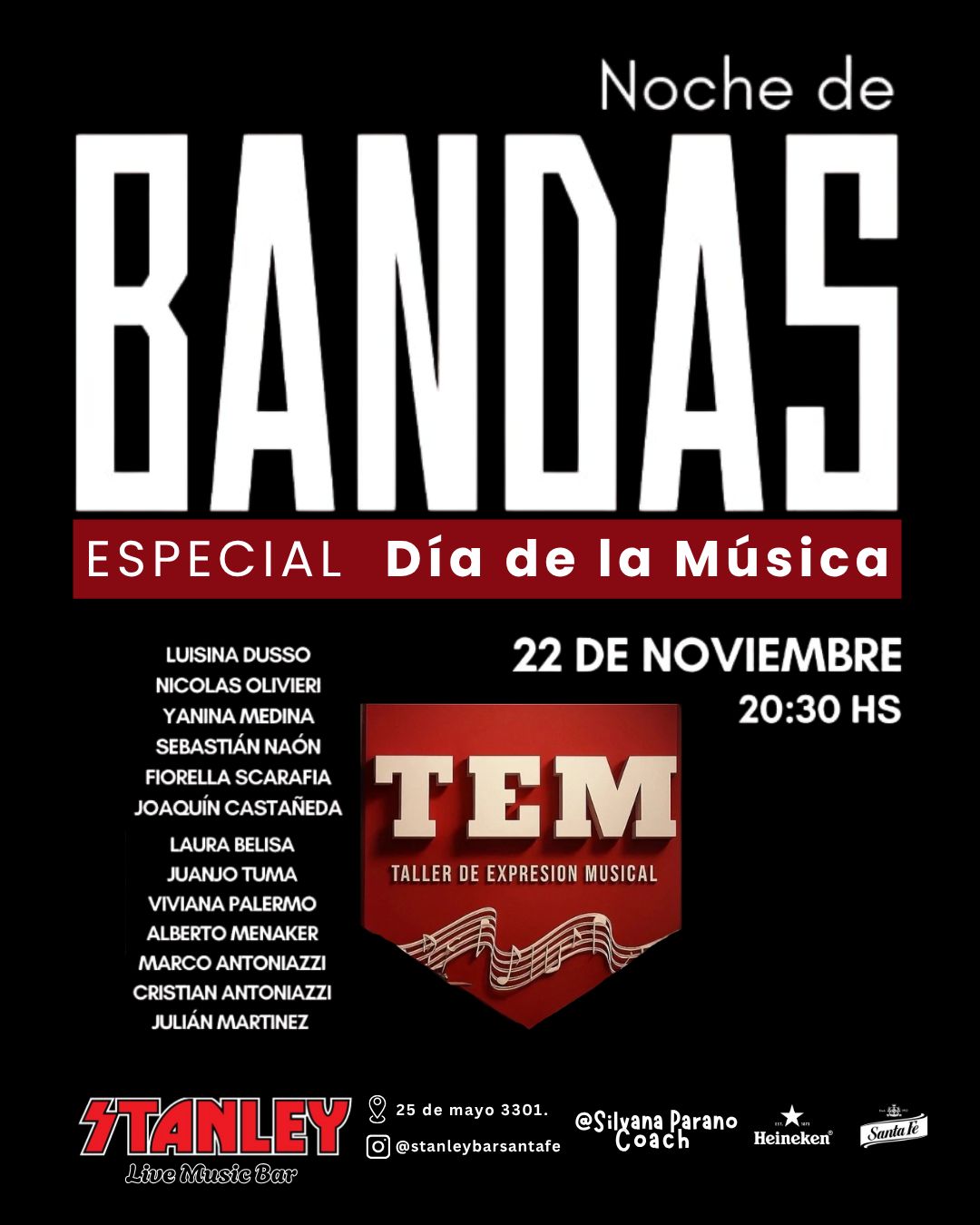 🎸 ¡Semana explosiva en Stanley! Música en vivo, bandas locales y noches para disfrutar a pleno.
