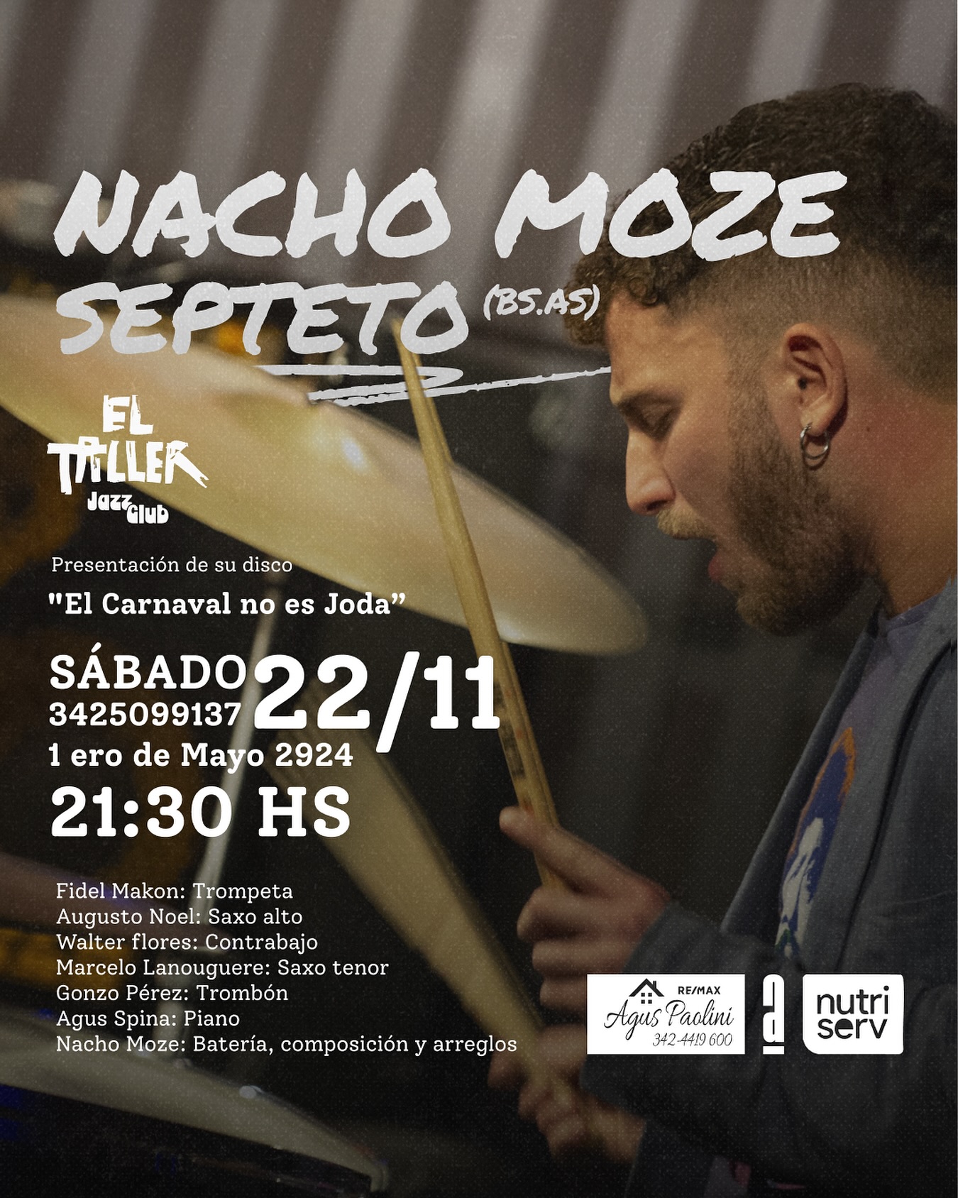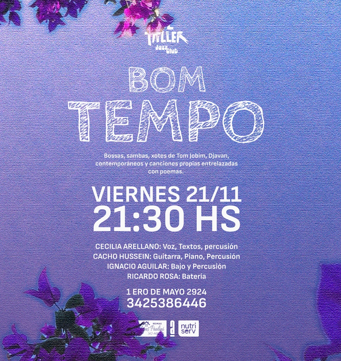 🔴M Ú S I C A de B R A S I L🔴 🗓️V I E R N E S 21 de Noviembre 🕣 21:30 hs 🎶B O M T E M P O🎶 Bossas, sambas, xotes de Tom Jobim, Djavan, contemporáneos y canciones propias entrelazadas con poemas. El balanceo de un Brasil delicado y potente juguetea con la música y la palabra. CECILIA ARELLANO : Voz, Textos, percusión CACHO HUSSEIN: Guitarra IGNACIO AGUILAR: Bajo y Percusión RICARDO ROSA: batería ❌CAPACIDAD LIMITADA❌ 🍷🍻Barra de Cervezas, Vinos y Tragos.🍻🍷 ❇️Ricas 🥟🥟🥟de carne, Jamón y queso y verdura.❇️   🔴M Ú S I C A de J A Z Z🔴 🗓️SÁBADO 22 de Noviembre 🕣 21:30 hs ❎NACHO MOZE SEPTETO❎ (BS AS) *🔴Presentación de su disco “El Carnaval no Joda”* 📍Fidel Makon: Trompeta 📍Augusto Noel: Saxo alto 📍Marcelo Lanouguere: Saxo tenor 📍Gonzo Pérez: Trombón 📍Agus Spina: Piano 📍Walter flores: Contrabajo 📍Nacho Moze: Batería, composición y arreglos. 🎵 “El nuevo disco de Nacho Moze es una declaración visceral, un viaje emocionante que hunde sus raíces en la profundidad del ritual. Como todo lo que hace, Moze aborda esta obra atravesado por una intensidad que lo define y lo distingue. A través de una formación típica de jazz, Nacho teje un recorrido sonoro que conecta el candombe, la vidalas, la milonga y otros ritmos que conversan con la historia y la identidad de nuestra región, tradiciones que se presentan en esta obra atravesadas por los ecos de su niñez en el barrio. ❇️Podrán adquirir sus entradas anticipadas con descuento por transferencia al Alias: eltallercasadearte O a la cuenta de Mercado pago DARIOGILES.MP   💰Valor de la entrada. Anticipada 💰 $ 15.000 En puerta en caso de disponibilidad: 💰$ 18.000 (Enviar comprobante). ❌CAPACIDAD LIMITADA❌ 🍷🍻Barra de Cervezas, Vinos y Tragos.🍻🍷 ❇️Ricas 🥟🥟🥟de carne, Jamón y queso y verdura.❇️
