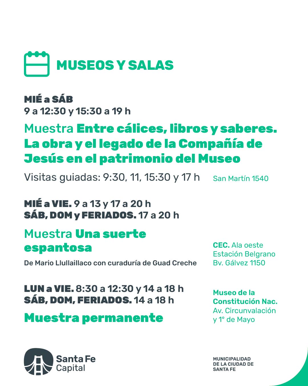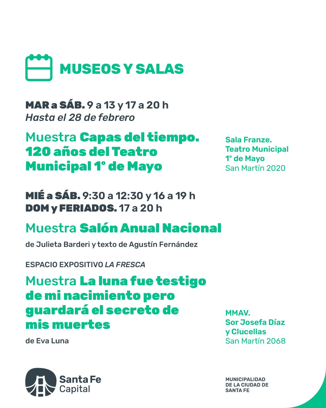 Agenda de la Secretaria de Cultura del Gobierno de la ciudad de Santa Fe