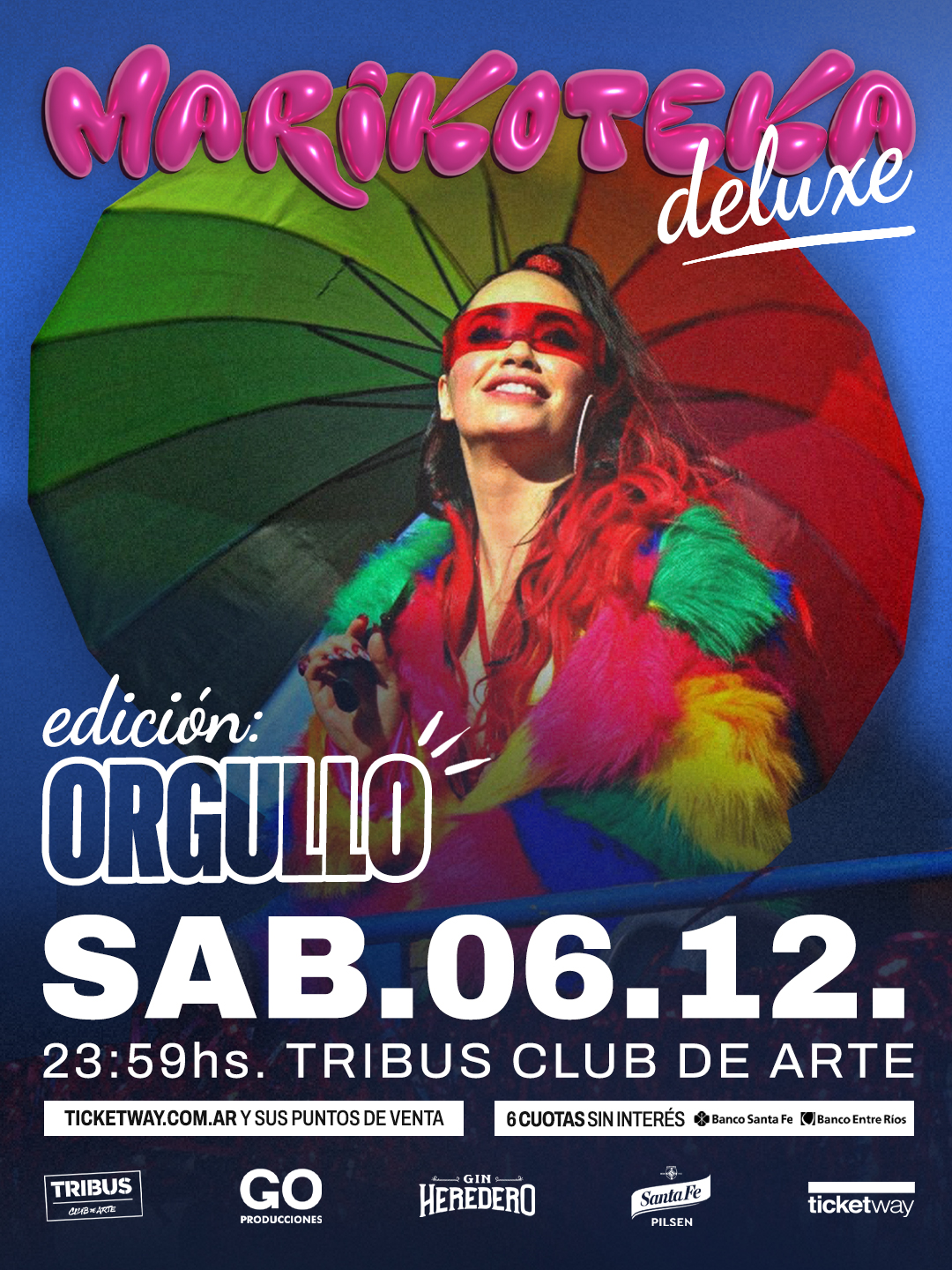 El sábado 6 de diciembre a las 23.59 h, después de la Marcha del Orgullo, llega la Marikoteka Deluxe Edición Orgullo, con perfos drag, la Mariko Dance Crew y DJs sets en vivo. Entradas a la venta en boletería y a través de Ticketway.