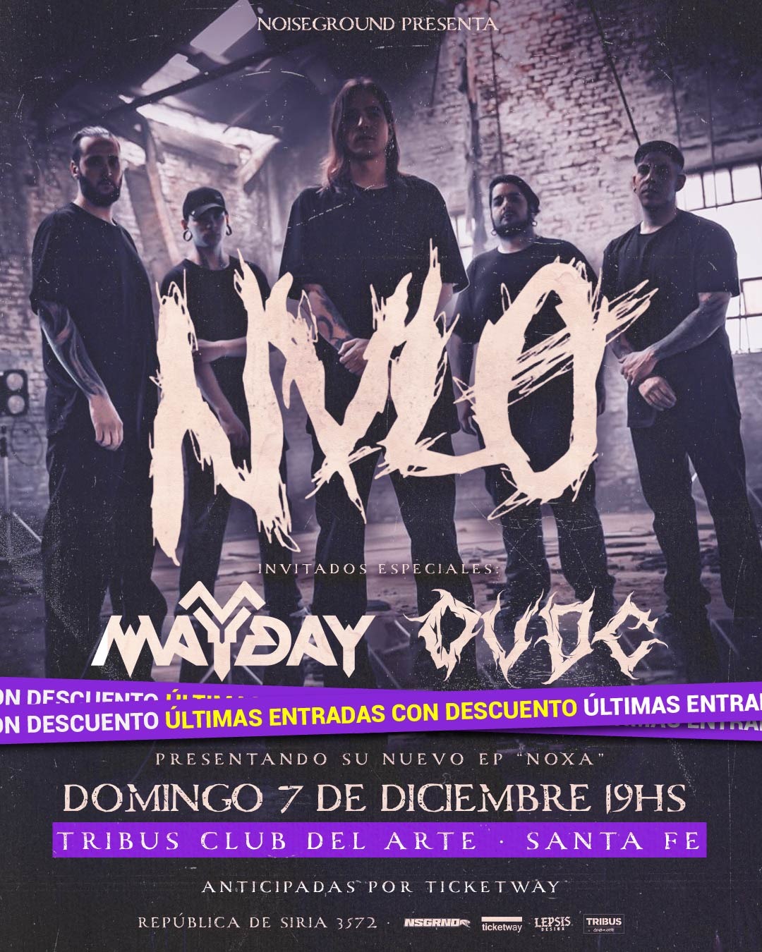 El domingo 7 de diciembre a las 20 h, NVLO, los referentes del nuevo metal extremo argentino, llegan a Tribus presentando su último EP “Doxa” con un show demoledor. Como invitados estarán Mayday y OVDC. Entradas a la venta en boletería y a través de Ticketway