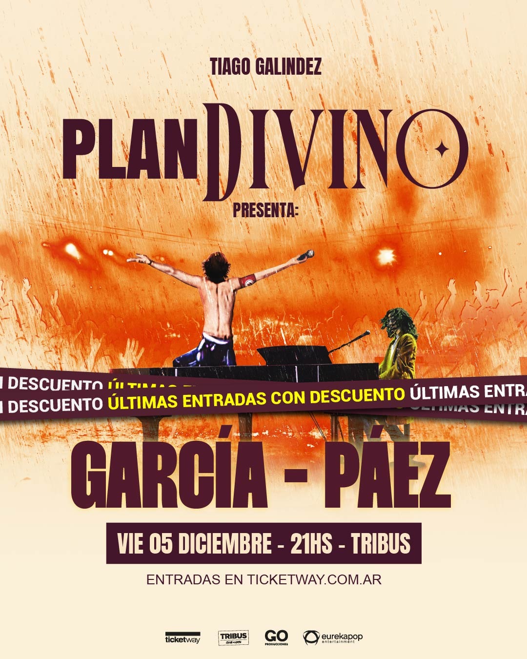 El viernes 5 de diciembre a las 21 h, Plan Divino, la mega banda que celebra la obra maravillosa de Charly García y Fito Páez, llega a Tribus en una noche llena de himnos y emoción. Entradas a la venta en boletería y a través de Ticketway.
