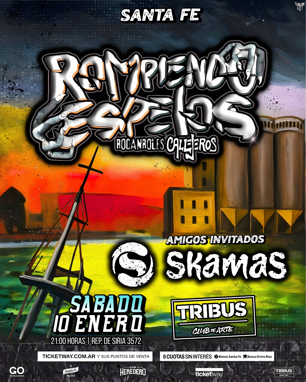 SÁBADO 1 0 D E ENERO A LAS 21 HS: Rompiendo Espejos ( tributo a C allejeros) y Skamas reciben el año en Santa Fe con todo el rocanrol y el mejor reggae y ska. Adquirí tu ticket en la boletería d e Tribus y a través de Ticketway.