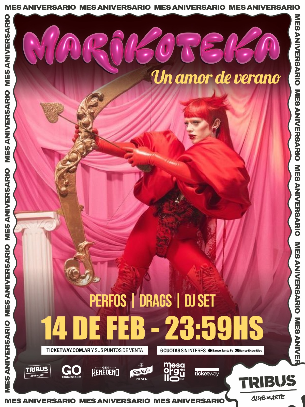SÁBADO 14 DE FEBRERO A LAS 23.59 HS: “Marikoteka: E dición U n Amor d e Verano” l lega a Tribus c on l as m ejores p erfos, drags y D J Sets. Entradas a l a v enta e n boletería y a través de T icketway.