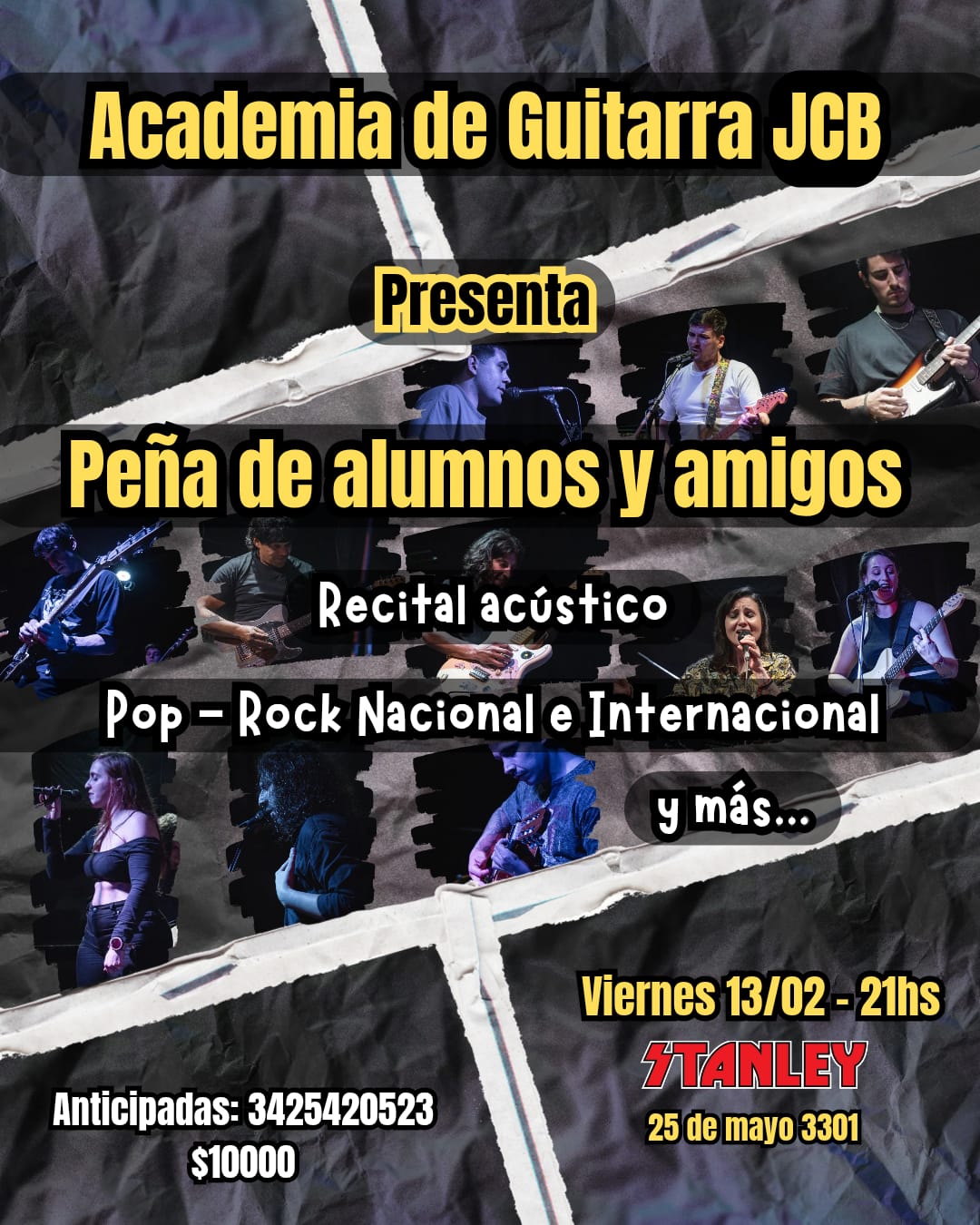 13/2 - La Academia de guitarra JCB, coordinada por Juan Cruz Benítez, presenta un recital acústico el viernes 13/02, a partir de las 21hs en el tradicional Stanley Bar, de la mano de seis alumnos en colaboración con músicos invitados.