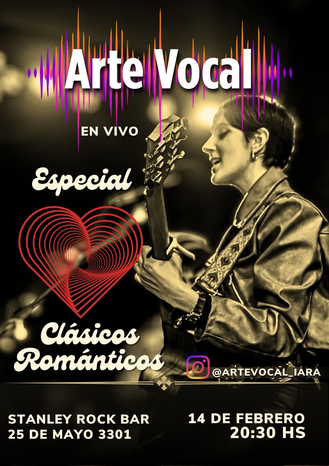 Este sábado 14 de febrero, en el marco del Día de los Enamorados, Arte Vocal, dirigida por Iara Jiménez, presenta una nueva muestra de canto en Stanley Bar.