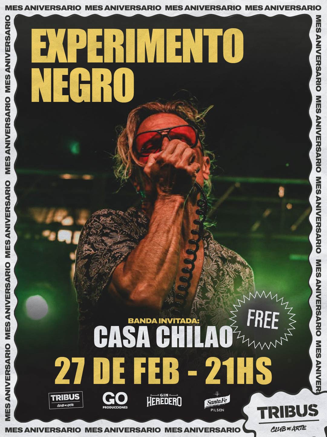 VIERNES 27 DE FEBRERO A LAS 21 HS: En el marco del Mes Aniversario, Experimento Negro llega a Tribus para una noche llena de rock en estado puro. Como banda invitada estará Casa Chilao. Entrada libre y gratuita.