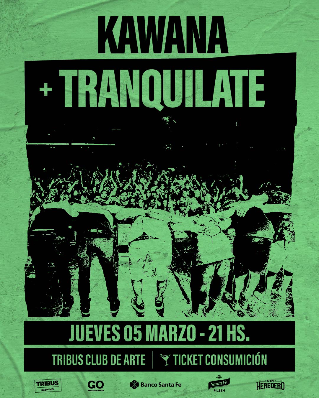 El jueves 5 de marzo a las 12 h, vení a disfrutar de las mejores bandas locales con los shows de Kawana (reggae roots que combina clásicos del género con composiciones propias) y Tranquilate (rock/pop alternativo que combina canciones de su autoría con versiones de temas clásicos). Adquirí tu ticket válido por una consumición en la boletería de Tribus.