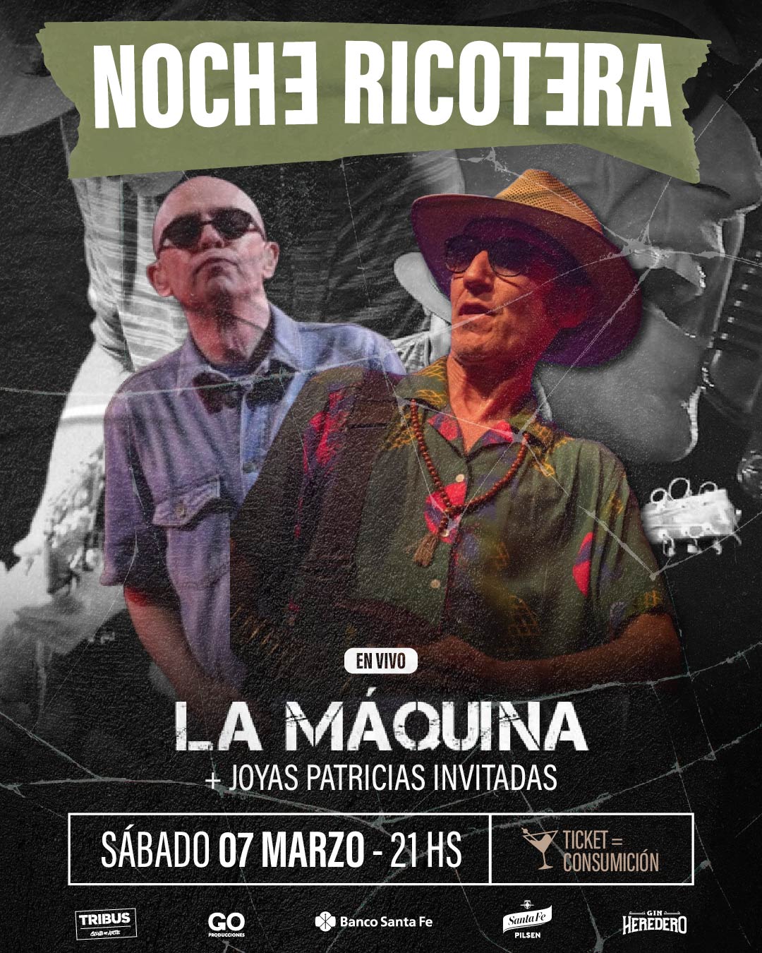 El sábado 7 de marzo a las 21 hs, llega la Noche Ricotera con el show de La Máquina, el mejor homenaje a Skay Beilinson, el corazón de Patricio Rey. Además, Joyas Patricias invitadas. Adquirí tu ticket válido por una consumición en la boletería de Tribus.