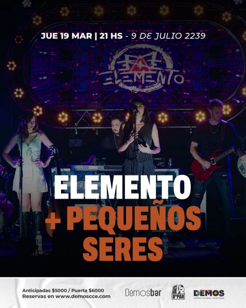 El próximo jueves 19 de marzo llegan Elemento y Pequeños Seres al escenario de DEMOS