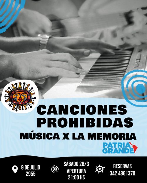 El próximo sábado 28 de marzo compartiremos "Canciones Prohibidas". Las y los esperamos para vivir una noche de Música X la Memoria.