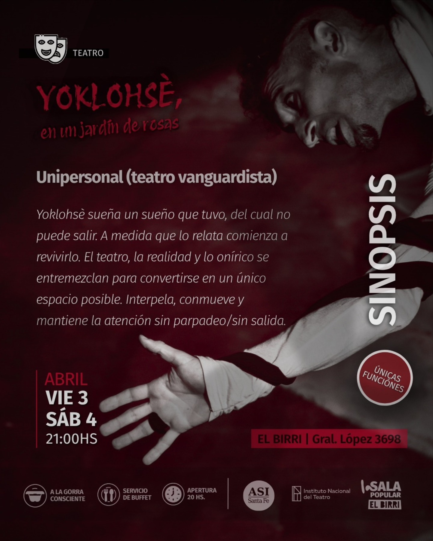 VIERNES 3 y SÁBADO 4 DE ABRIL, 21hs: TEATRO: “YOKLOHSE, EN UN JARDÍN DE ROSAS”