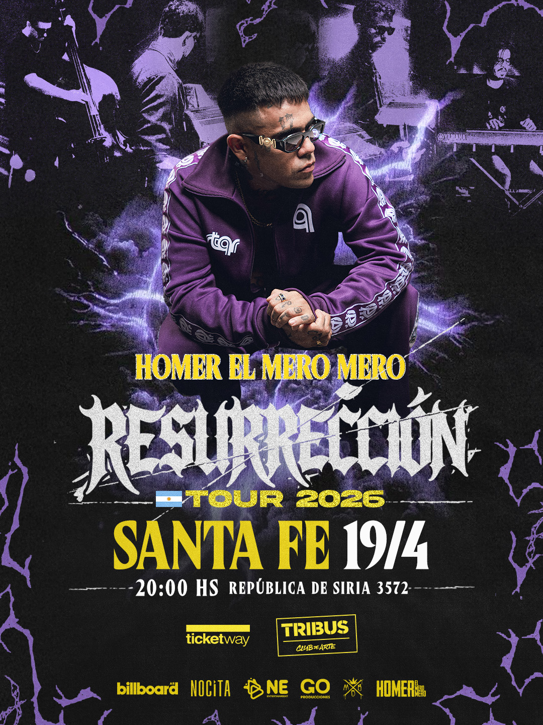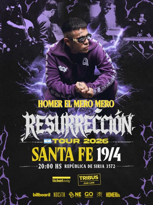 DOMINGO 19 DE ABRIL A LAS 20 HS: El referente del rap argentino Homer El Mero Mero llega a Tribus con su nueva gira “Resurrección Tour”, un proyecto que marca su regreso a los escenarios y el inicio de un nuevo capítulo artístico y personal. Entradas a la venta en boletería y a través de Ticketway.