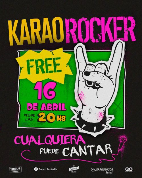 JUEVES 16 DE ABRIL A LAS 20 HS: El Karaorocker vuelve a Tribus! Subite al escenario a cantar tu canción favorita y participá de los mejores premios y promos. Entrada libre y gratuita.