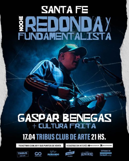 VIERNES 17 DE ABRIL A LAS 21 HS: Noche Redonda y Fundamentalista en Tribus con el show de Gaspar Benegas (guitarrista de Los Fundamentalistas del Aire Acondicionado) junto a Cultura Frita (homenaje a Los Redondos). Entradas a la venta en boletería y a través de Ticketway.