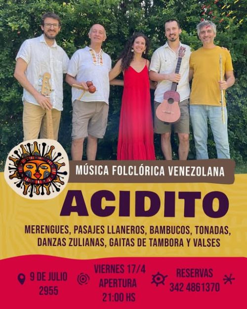 Acidito es un grupo de música folclórica venezolana integrado por Electra Barbagelata en voz, Santiago Weber en cuatro, José Luis Viggiano en maracas, Juanjo Cáceres en bajo y Luis Barbero en flauta. En su repertorio se pueden escuchar merengues, pasajes llaneros, bambucos, tonadas, danzas zulianas, gaitas de tambora, valses, recorriendo a través de la música las regiones venezolanas. Interpretan música instrumental y cantada.
