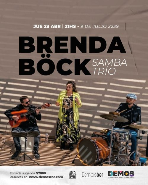 Este jueves 23 de abril te invitamos a viajar a través de la música con Brenda Böck Samba Trío . Desde 2014, el grupo viene recorriendo los clásicos del samba y la bossa nova, trayendo a nuestro escenario la esencia de grandes como Caetano Veloso, João Gilberto y Dorival Caymmi.