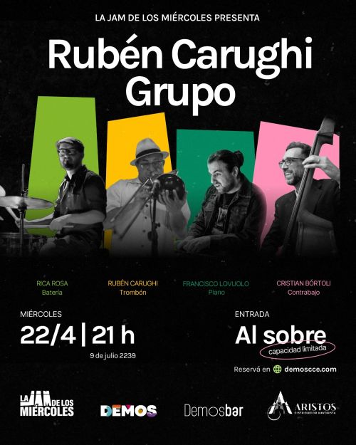 Este miércoles 22 de abril, recibimos a Rubén Carughi Grupo para una velada cargada de virtuosismo y calidez sonora. Una oportunidad única para disfrutar de cuatro pilares de nuestra música en un formato íntimo y vibrante: