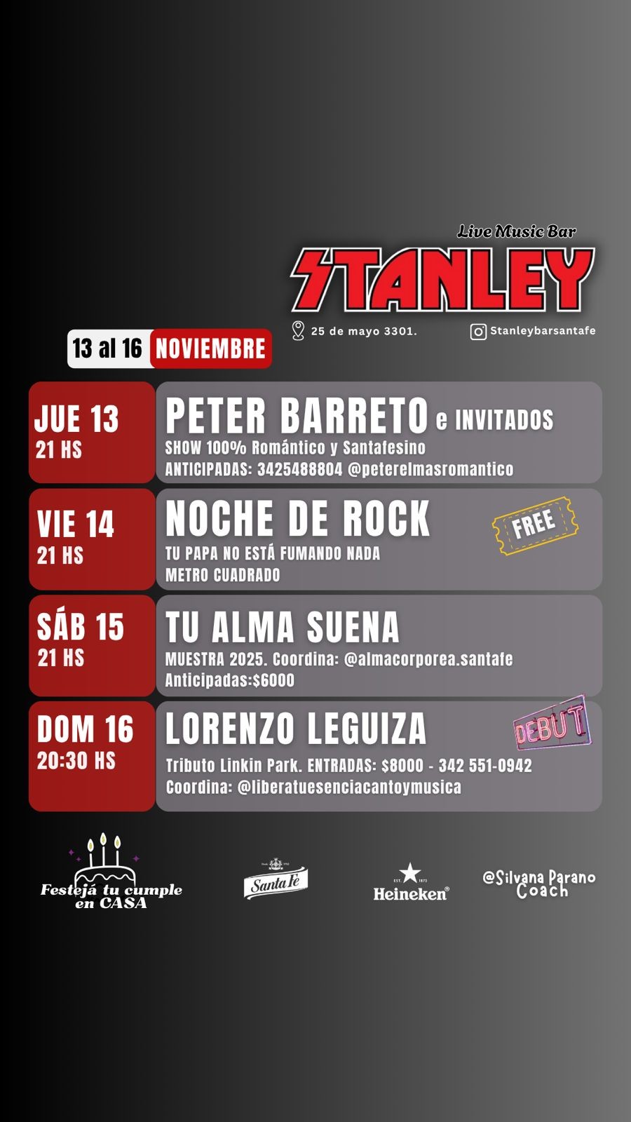 AGENDA STANLEY | 13 al 16 de NOVIEMBRE